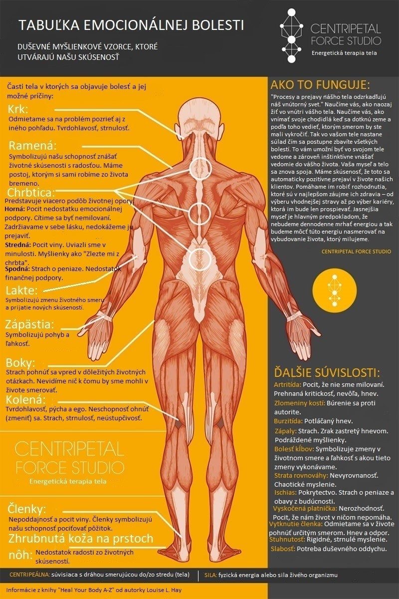 Tělesné projevy bolesti jsou vždy až sekundární. Každý zdroj bolesti v našem těle je přímo napojen na nějaký specifický emocionální stav.