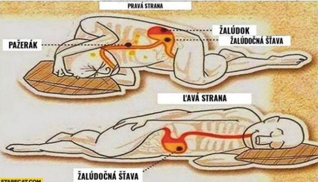 Navíc je levý bok přirozený i pro umístění žaludku či slinivky, které v takové poloze pracují o něco efektivněji.