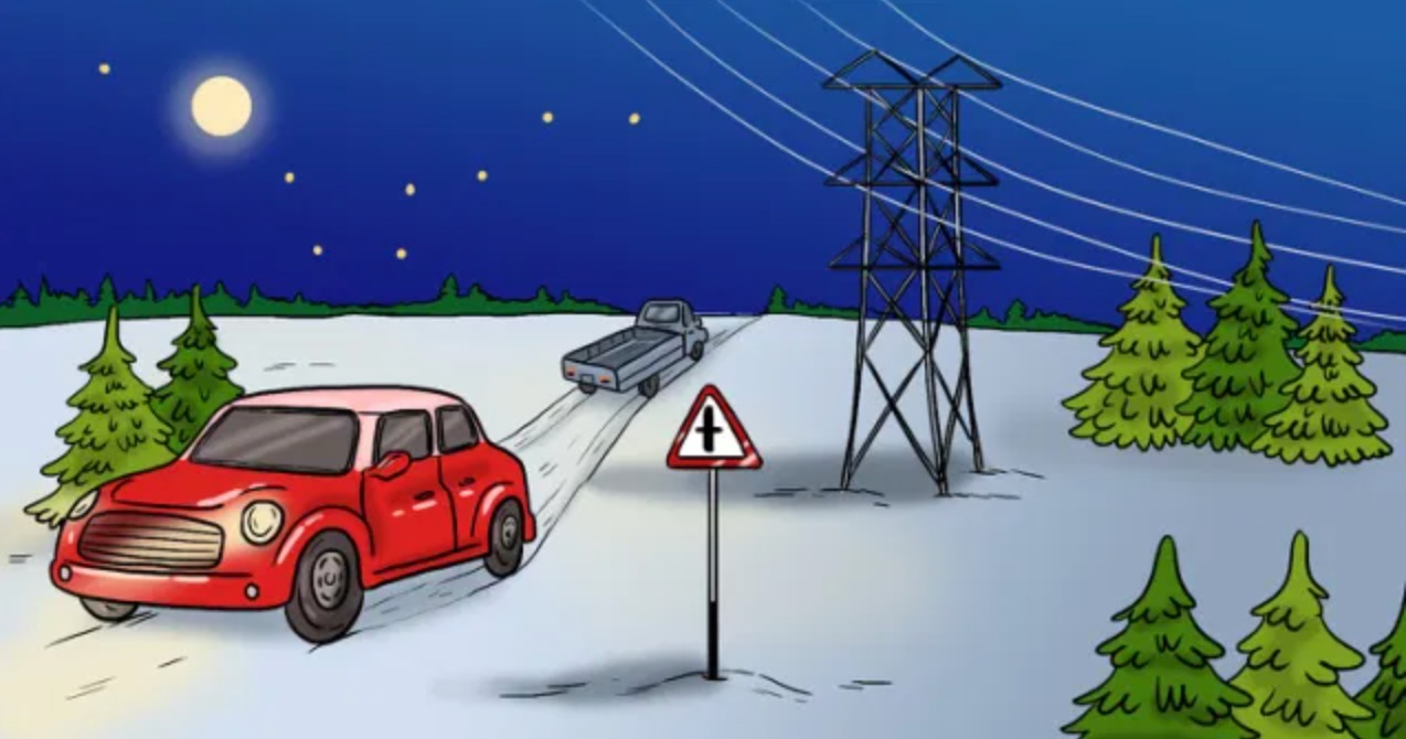 6. Mnoho času mu nezbývá. Značky autu ukazují, že se blíží strmý útes, pokud nechce tedy auto vejít do kolejí, bude muset brzy zahnout doleva nebo zastavit.