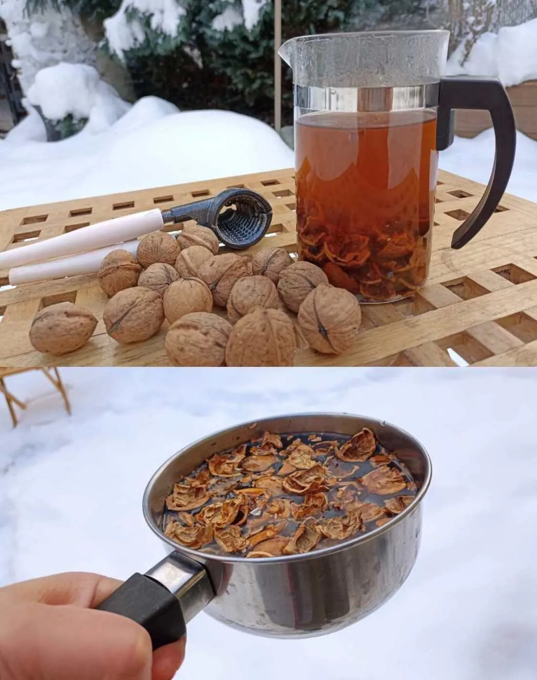 Podľa prvého receptu orechové škrupiny umyte, zalejte pol litrom studenej vody a nechajte lúhovať 12 hodín. Pred konzumáciou povarte 5 minút a doslaďte medom.