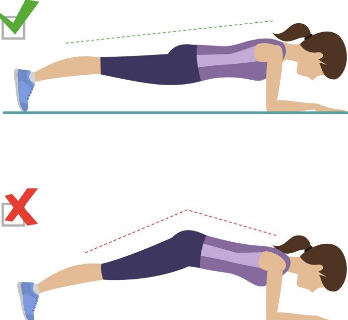 4. Na aktivaci svalů ve spodní části těla, stáhněte hýždě. Nesmíte ho však zvedat, ani spouštět k zemi. Celé tělo musí být rovné, ne ve tvaru trojúhelníku nebo oblouku.