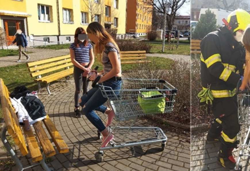 Mladá slečna se zřejmě chtěla vrátit do dětských let a sedla si do sedátka nákupního košíku. Už se z něj ale nemohla dostat ven. Pomoci museli hasiči.
