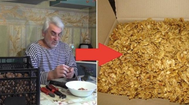 Tímto způsobem je možné rozbít dokonce i nejpevnější nejhustší skořápku tak, aby jádro zůstalo nedotčené. S obyčejnou lahví můžete touto technikou očistit až 5 kg ořechů za hodinu.