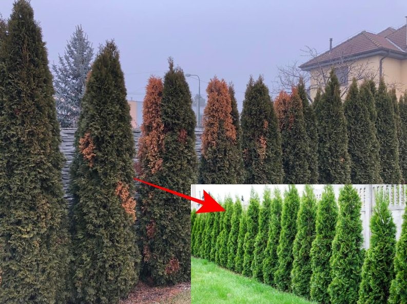 Řekl mi, že nejčastěji tuje trápí nedostatek hořčíku a že proto ztrácejí barvu a chřadnou.