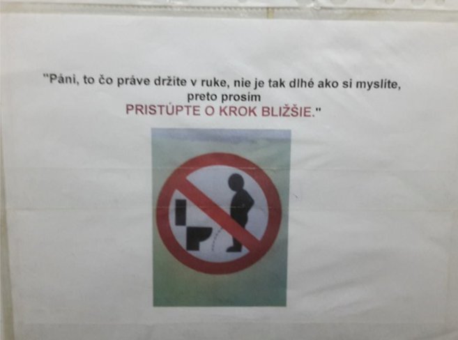 Kreativita lidí na Slovensku nezná hranic. Nejnověji to dokázala paní uklízečka z pracoviště jednoho posluchače rádiové relace, která svým vzkazem u pisoárů pobavila opravdu celé Slovensko.