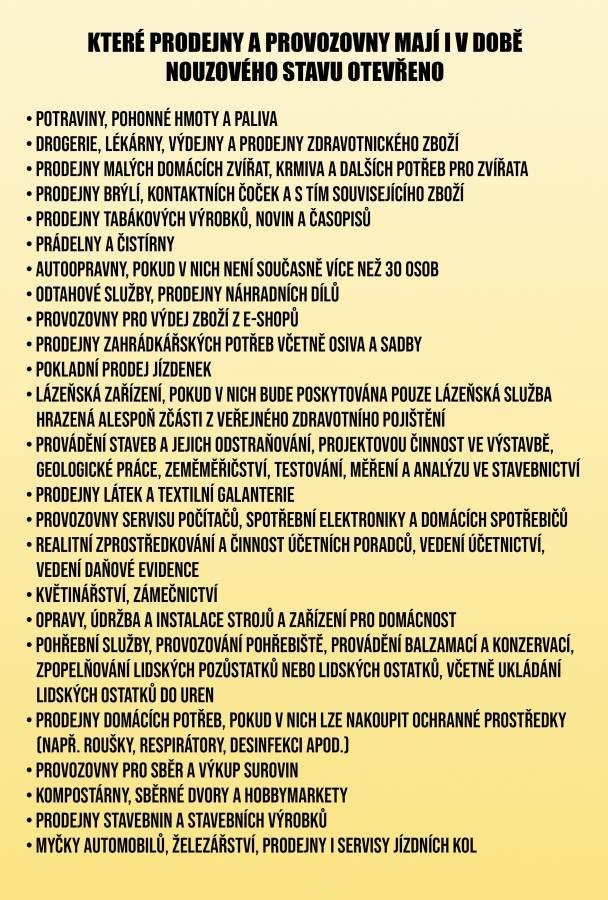 Později dostaly výjimku květinářství, galanterie, zámečnictví, opravny domácích spotřebičů či myčky aut.