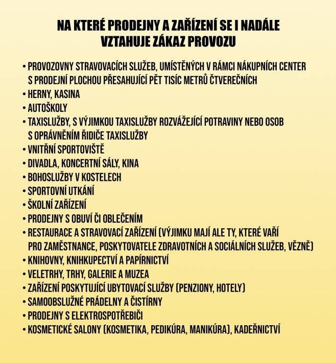 Později dostaly výjimku květinářství, galanterie, zámečnictví, opravny domácích spotřebičů či myčky aut.