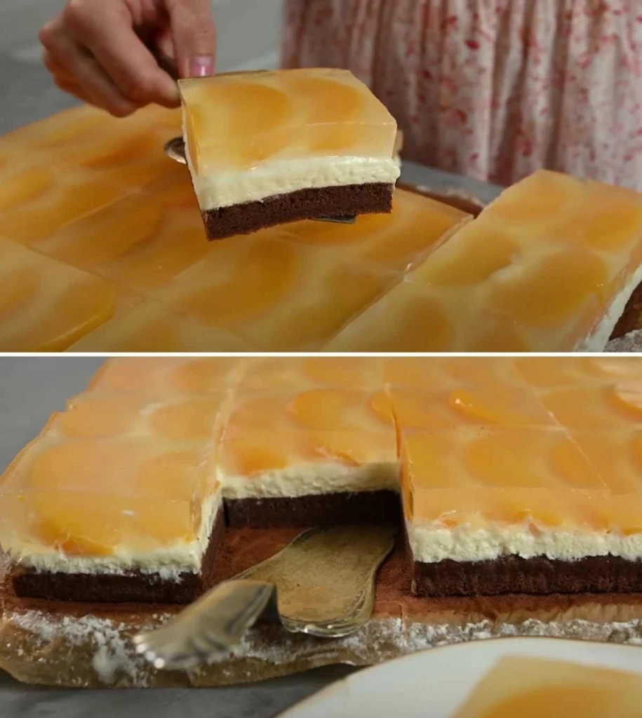 Tento broskvový koláč s kakaovým korpusem, tvarohovým krémem a ovocným želé je dokonalou volbou pro sváteční stůl i obyčejné posezení u kávy. Je šťavnatý, osvěžující a připravený z ingrediencí, které najdete téměř v každé domácnosti. Recept vychází z tradiční kuchyně našich babiček a přesto je jednoduchý na přípravu.