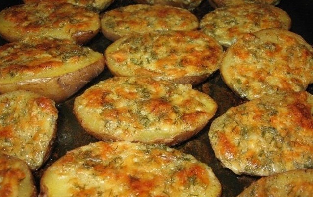 - Pečení: Plátky brambor dáme na vymazaný plech a každý kus potřeme česnekovou omáčkou. Pečeme v předehřáté troubě na 220 °C po dobu 10–15 minut, dokud nejsou brambory křupavé a zlatavé.