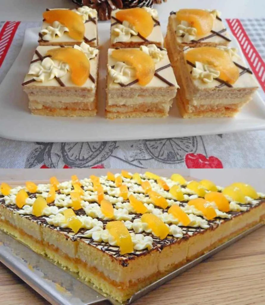Meruňkový zákusek „Sedmé nebe“ zaujme nejen svou bohatou kombinací vrstev, ale i kontrastem jemného krému, šťavnatého ovoce a křupavého ořechového těsta. Díky sirupu s rumem získá lehce aromatický nádech a čokoládová poleva mu dodá ten pravý sváteční lesk. Podávejte ve vychlazeném stavu ke kávě či odpolednímu čaji a přeneste své hosty do sladké fantazie.