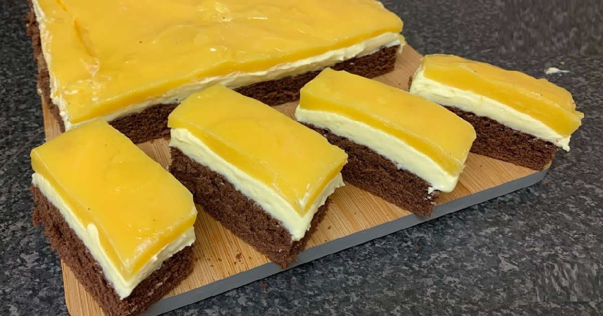 Fanta řezy – osvěžující letní dezert s tvarohem a pomerančovou polevou recept