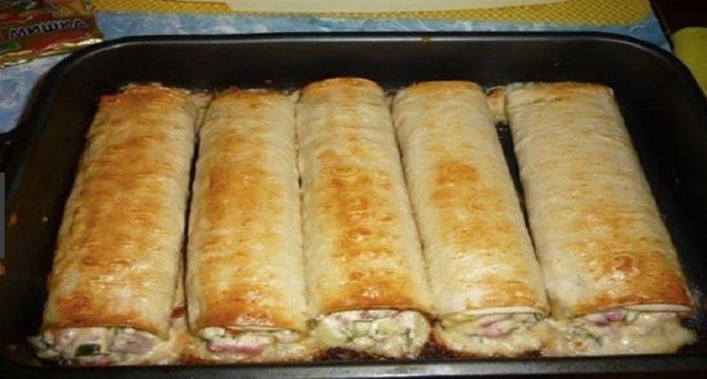 - Každý plátek chleba Lavas potřete trochou majonézy, navrstvěte připravenou směs a zabalte do pevné rolády.