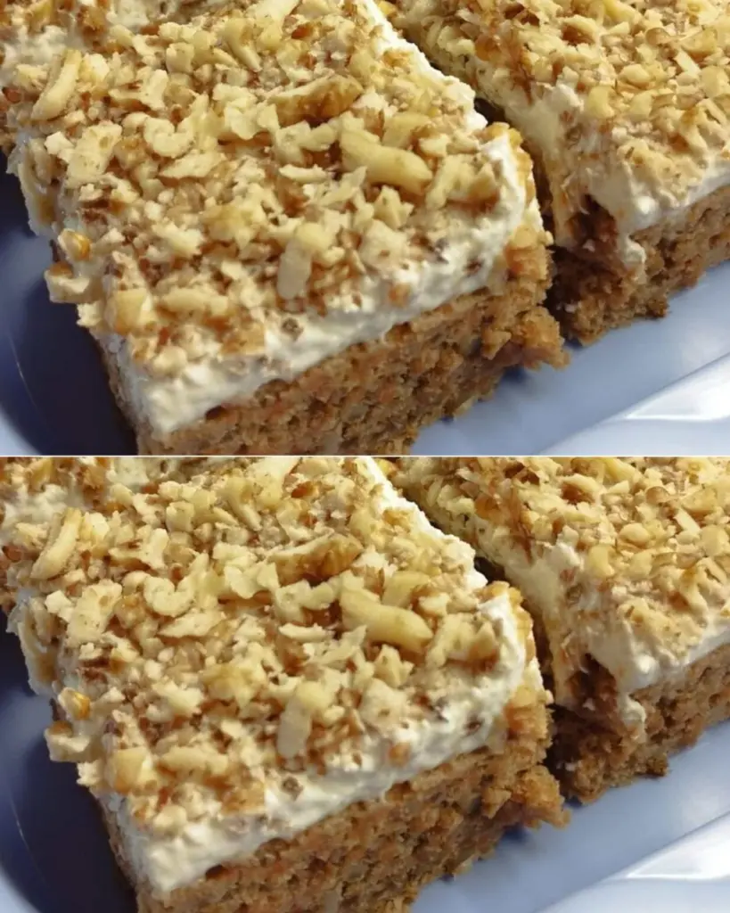 • Vychladnutý koláč rovnomerne potrite krémom, posypte nasekanými orechmi a dajte aspoň na niekoľko hodín do chladničky, ideálne cez noc.