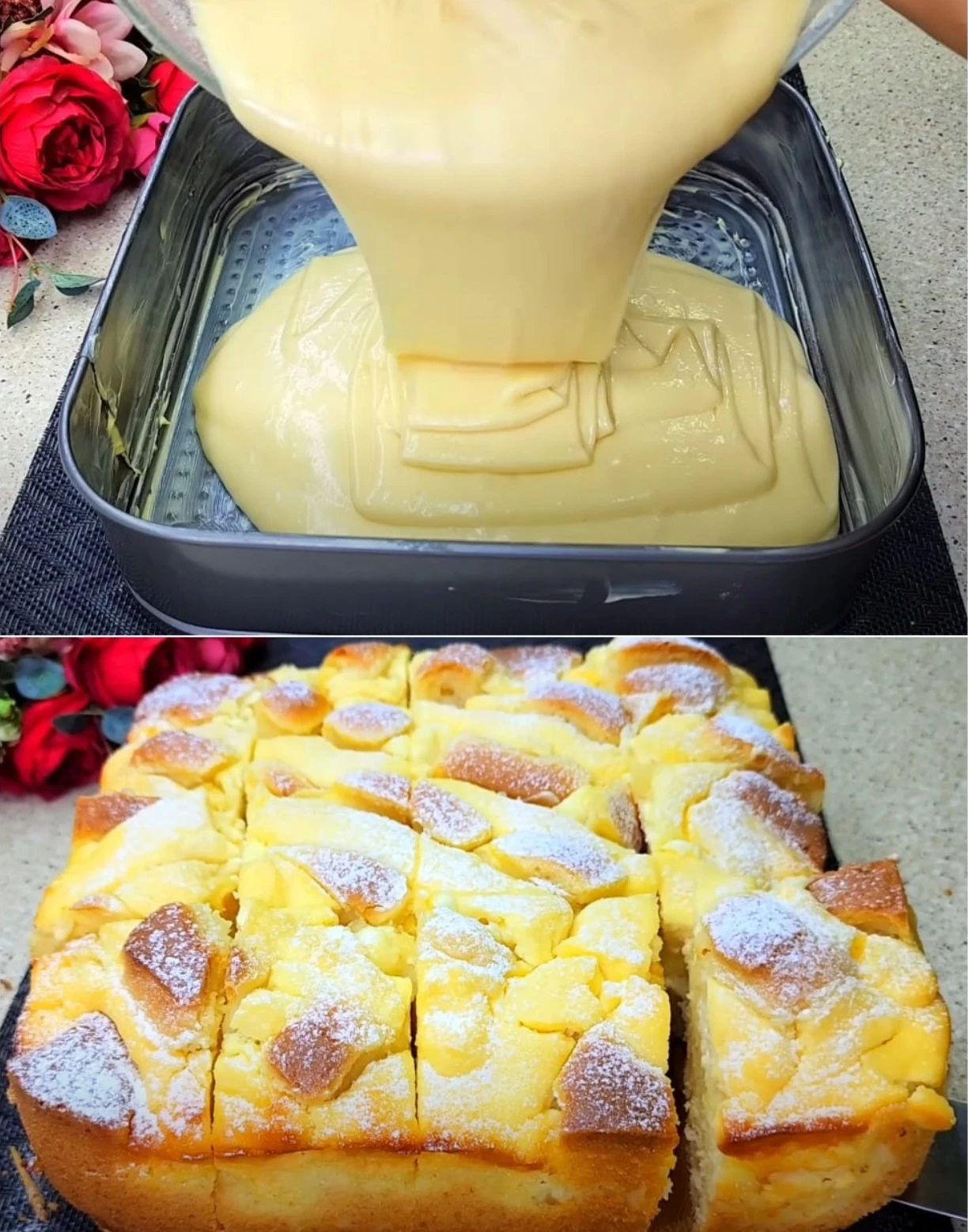 Jablečný koláč s vanilkovým pudinkem hotový za 5 minut – vláčný, rychlý a neodolatelný recept