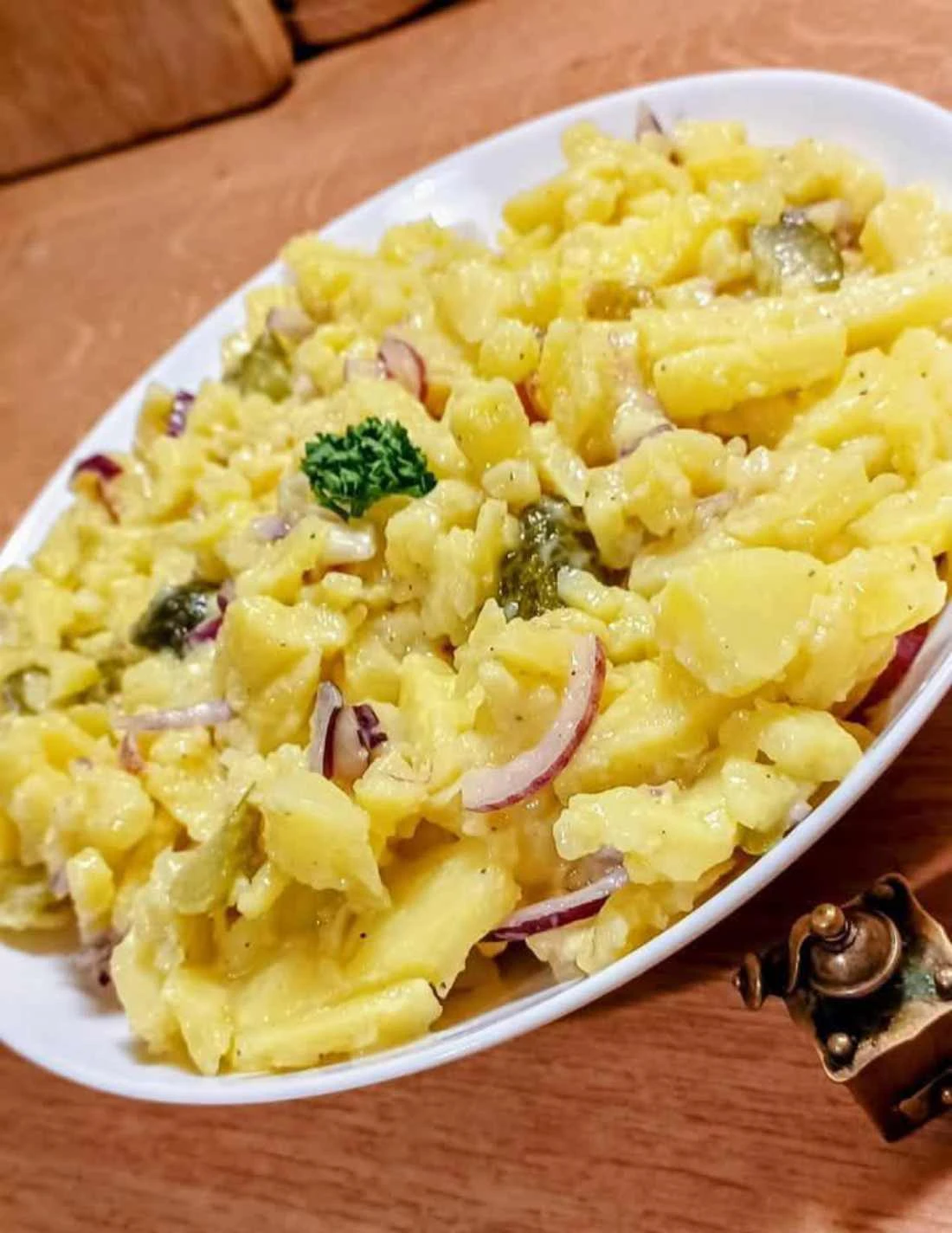 Tento bramborový salát je důkazem, že i z jednoduchých a dostupných surovin lze připravit skvělé jídlo. Není v něm majonéza ani žádné drahé přísady, a přesto vyniká chutí, která se krásně rozleží. Hodí se jako příloha nebo lehký oběd či večeře.
