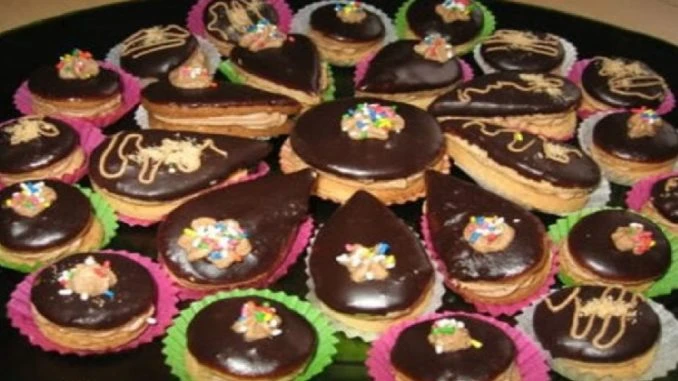 • Slepování a zdobení Na každý vychladlý korpus naneste lžičku krému a přiklopte druhým dílkem. Hotové cukroví namočte vrchní částí do čokoládové polevy a položte na papír ztuhnout. Podle chuti můžete ozdobit ořechem či jemným sypáním.