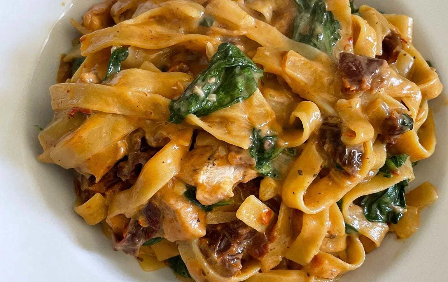 Tento recept na krémové těstoviny s kuřecím masem, sušenými rajčaty a špenátem je skvělou volbou pro rychlou a chutnou večeři. Díky kombinaci smetanové omáčky, kuřecího masa a zeleniny získáte syté a vyvážené jídlo, které potěší každého. Navíc příprava v jedné pánvi usnadní úklid a ušetří čas.