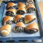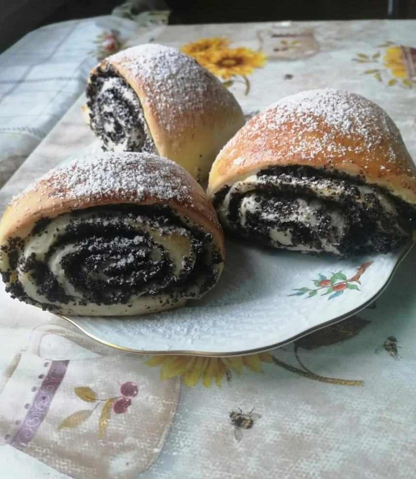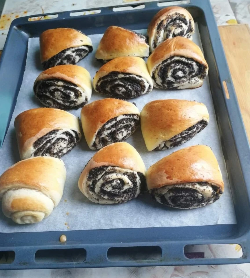 • Tvarování a pečení: Vykynuté těsto vyválejte na pomoučněné pracovní ploše na tenkou vrstvu. Rozetřete makovou náplň na těsto a pevně je zarolujte. Nakrájejte na malé trojúhelníčky a položte je na plech vymazaný olejem. Potřete je rozšlehaným vajíčkem a pečte v předehřáté troubě na 180 °C asi 25–30 minut, dokud nejsou zlatavé. Po upečení můžete posypat makové trojúhelníčky práškovým cukrem pro extra sladkost.