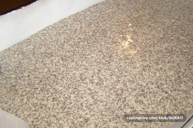 • Připravení plechu: Těsto nalijeme na plech vyložený pečícím papírem.