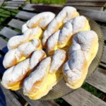 • Plnění krémem: Vychladlé koblihy nakrojte v polovině. Naplňte je krémem (nejlépe cukrářským sáčkem).