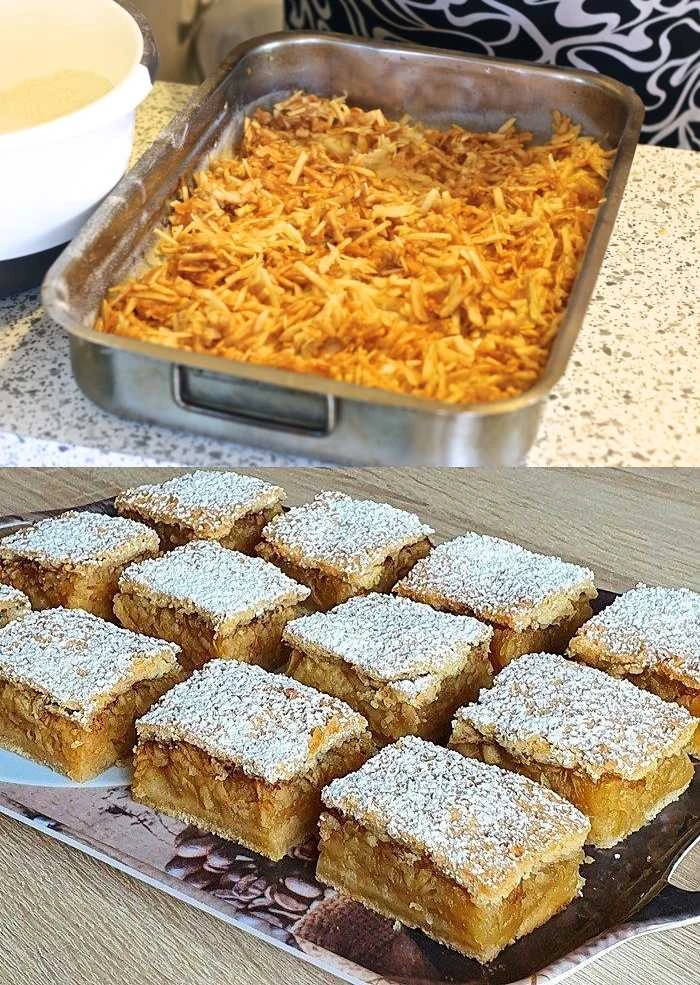 • Pečení Na vrchní vrstvu rovnoměrně nastrouhejte máslo. Koláč pečte v předehřáté troubě na 180–200 °C přibližně 40–50 minut, dokud nezezlátne.