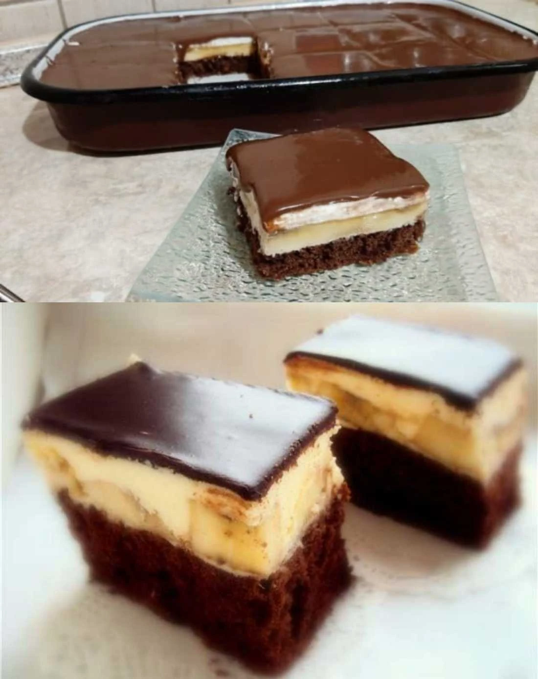 Tento banánovo-čokoládový koláč je doslova sladkým pokušením, kterému málokdo odolá. Kombinace vláčného těsta, šlehačky, banánů, kakaového krému a lesklé čokoládové polevy vytváří dokonalou harmonii chutí. Překvapte své blízké tímto skvostným zákuskem, který chutná ještě lépe po uležené noci v lednici. Nezapomeňte si recept uložit a sdílet ho s přáteli!