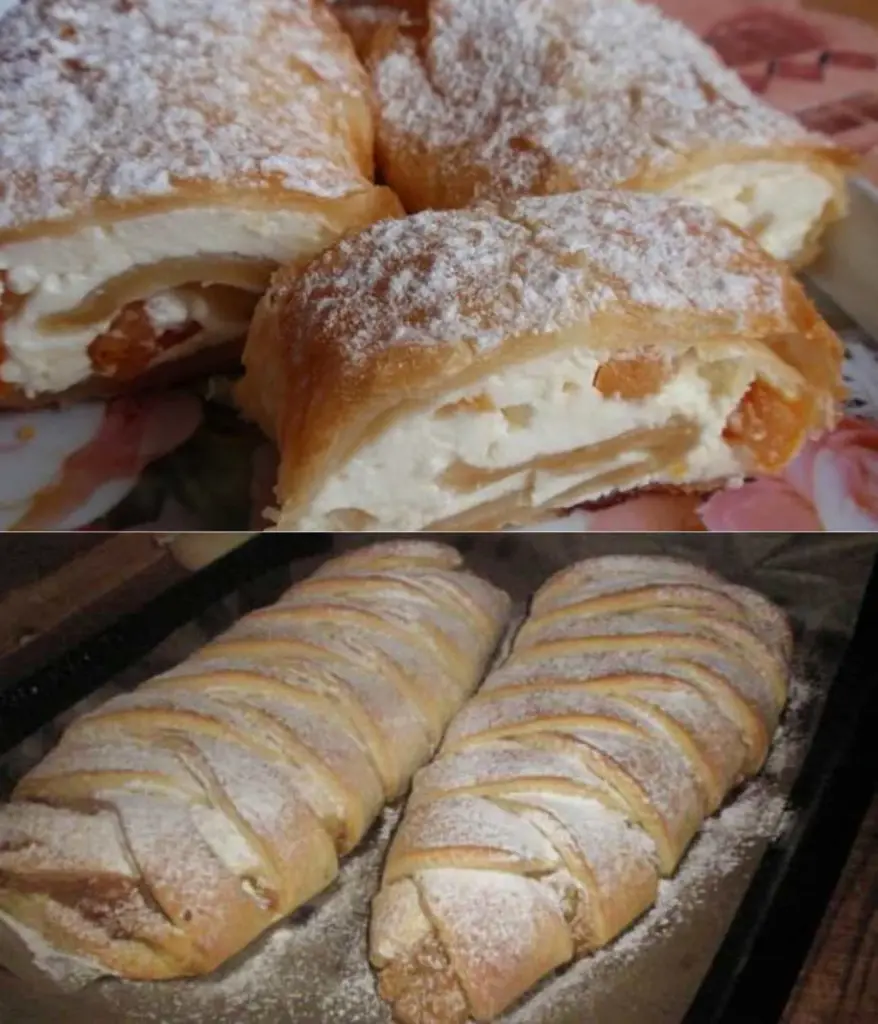 Tento recept vám představuje klasickou verzi štrúdle, ve které se snoubí dvě oblíbené vrstvy – voňavá jablková náplň a jemný tvarohový krém. Výsledek je křehký, vláčný a ideální jako domácí dezert ke kávě nebo čaji.
