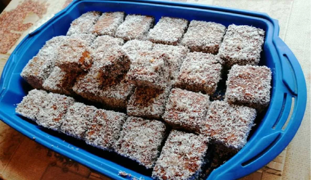 • Dokončení Ztuhlý koláč nakrájejte na kostky. Každý kousek namočte do kakaové směsi a obalte ve strouhaném kokosu. Nechte zaschnout a podávejte.