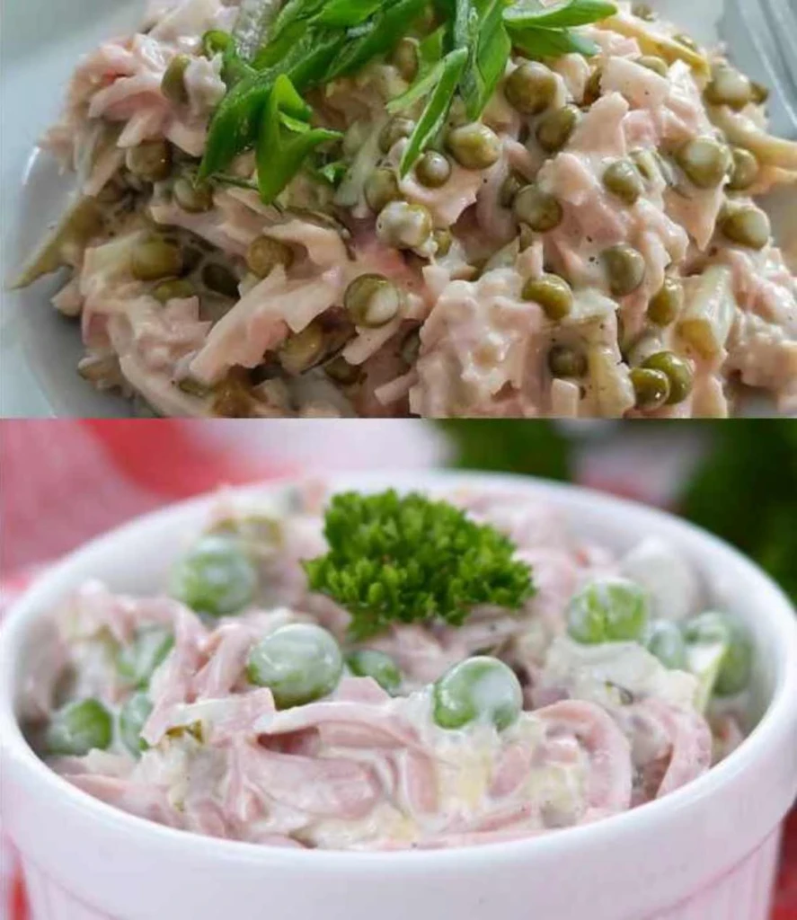 Tento pochoutkový salát je ideální volbou pro rychlou večeři, teplý sendvič či piknik. Díky kombinaci šunkového salámu, křupavých okurek a jemného hrášku s bohatou majonézou a pikantním dochucením si pochutná celá rodina. Připravte ho kdykoli, když chcete ozvláštnit běžné jídlo lahodným doplňkem.