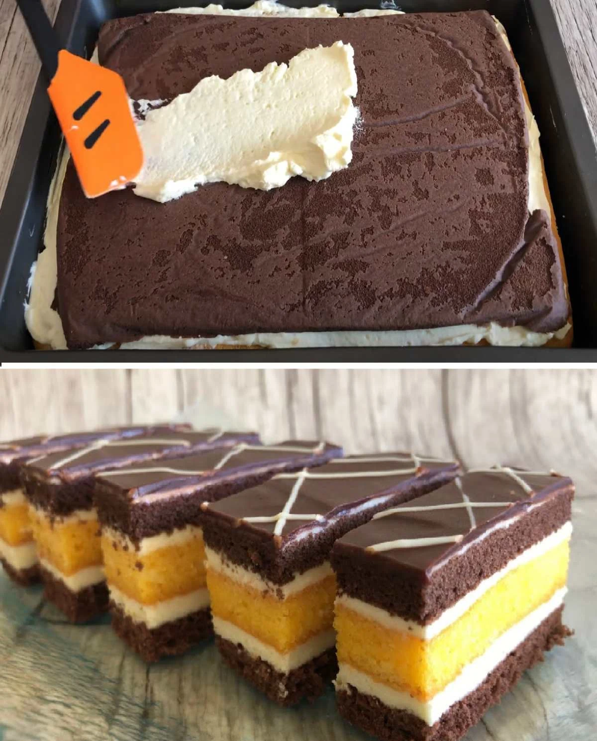 Pomerančové Sanquickové řezy jsou dezert, který spojuje lehkost, svěžest a jemnost v každém soustu. Vrstvy kakaového a světlého těsta s pomerančovou příchutí a hladkým vanilkovým krémem vytvářejí neodolatelný kontrast chutí. Tento zákusek se stane ozdobou každé oslavy – a navíc se vždy dokonale povede.