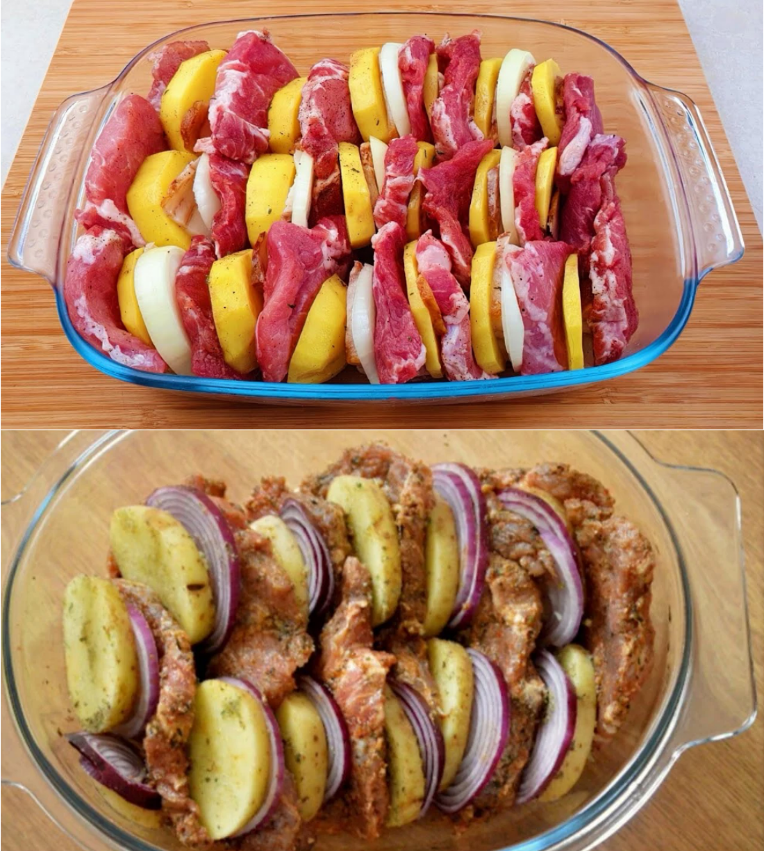Tahle prokládaná krkovice s bramborami a omáčkou z piva vás nadchne svou šťavnatostí a jednoduchostí. Vše se peče pohromadě a výsledek je maso, které se rozpadá jen vidličkou, dokonale ochucené brambory a voňavá cibule. Pokud máte rádi sytá jídla z jednoho pekáče, tenhle recept si zamilujete. Skvělý tip na víkendový oběd i slavnostní hostinu!