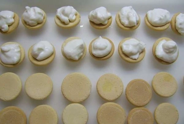 - 30–40 jednohubiek (podľa veľkosti piškót a použitia košíčkov)