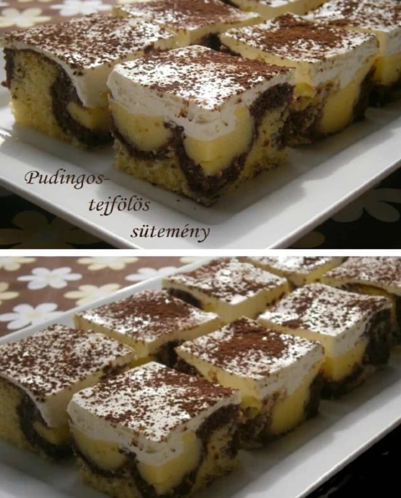 Pudingové kostky s kysanou smetanou: Neodolatelný moučník s krémovou vrstvou recept