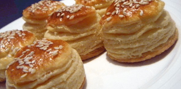 • Příprava na pečení: Pagáčky přendejte na plech vyložený pečícím papírem. Potřete je žloutkem smíchaným s trochou vody a posypte sezamovými semínky.