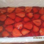• Připravte formu: Zapékací mísu nebo jinou vhodnou formu vyložte potravinářskou fólií. Na dno rozprostřete vrstvu nakrájených čerstvých jahod.