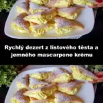 Tento rychlý dezert z listového těsta s mascarpone krémem je důkazem, že dokonalá chuť nemusí znamenat složité vaření. Křehké těsto, jemně sladký krém a lehký citronový tón tvoří harmonii, kterou si zamilujete už po prvním soustu. Hodí se na víkendové posezení, slavnostní tabuli i jako dezert po obědě. Stačí pár ingrediencí a během chvilky máte na stole dezert, který potěší oči i chuťové pohárky.