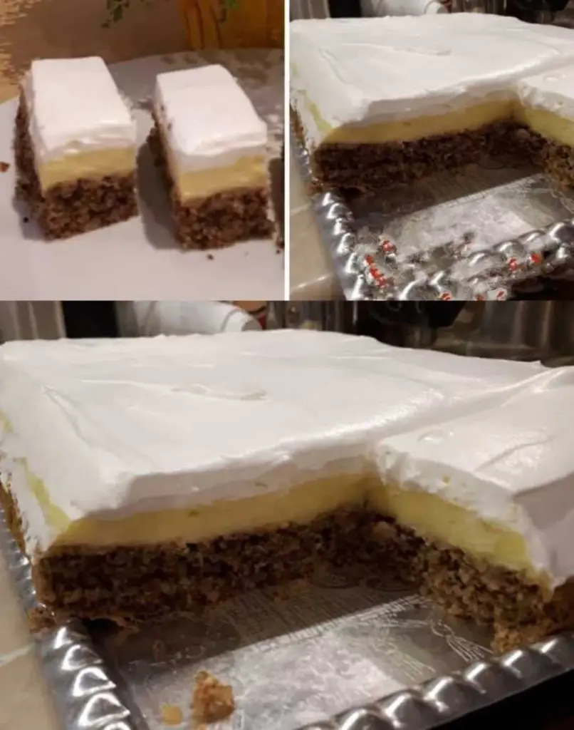 - Pripravíme krém: zmiešame mlieko s cukrom a pudingovým práškom a potom klasicky uvaríme hustý puding. Nechce sa vám variť? Nevadí - vymeňte klasický puding za puding bez varenia. Maslo vyšľaháme a vmiešame do vychladnutého pudingu (v prípade pudingu bez varenia môžeme vmiešať hneď). Navrch môžete natrieť šľahačku, prípadne len posypte orechmi.