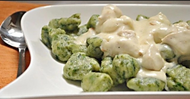 Špenátové noky s kuřecím masem a smetanovou omáčkou - Recept recept