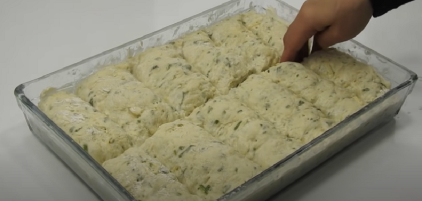 • Tvarování chleba Vykynuté těsto přendejte na máslem vymazaný plech. Rukama namazanýma olejem vytvořte v těstě zářezy a do nich vložte plátky sýra.
