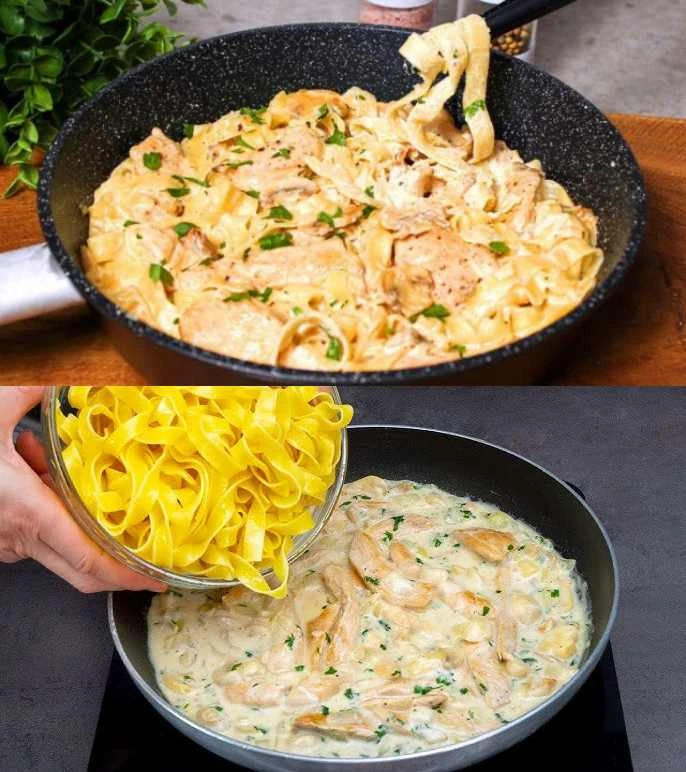 Tyto krémové těstoviny s kuřecím masem vás okouzlí svou jednoduchostí i lahodnou chutí. Hedvábná omáčka z parmazánu, šťavnaté kousky masa a vůně česneku vás mohou snadno přesvědčit, že se vyplatí investovat 40 minut do přípravy skvostné večeře.