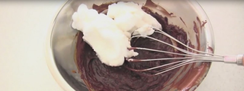 - Přidání bílků: Nejprve přidejte třetinu našlehaných bílků do čokoládové směsi a jemně promíchejte.
