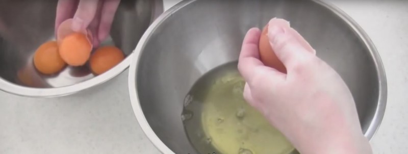 - Oddělení vajec: Nejprve oddělte žloutky od bílků a bílky dejte do lednice, aby byly chladné.