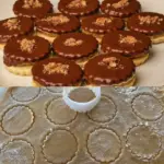 • Tvarování a pečení: Těsto rozválejte na tenký plát (asi 3 mm) a vykrajujte kolečka. Přeneste je na plech vyložený pečicím papírem a pečte v troubě předehřáté na 170 °C přibližně 10 minut – dokud nezezlátnou.