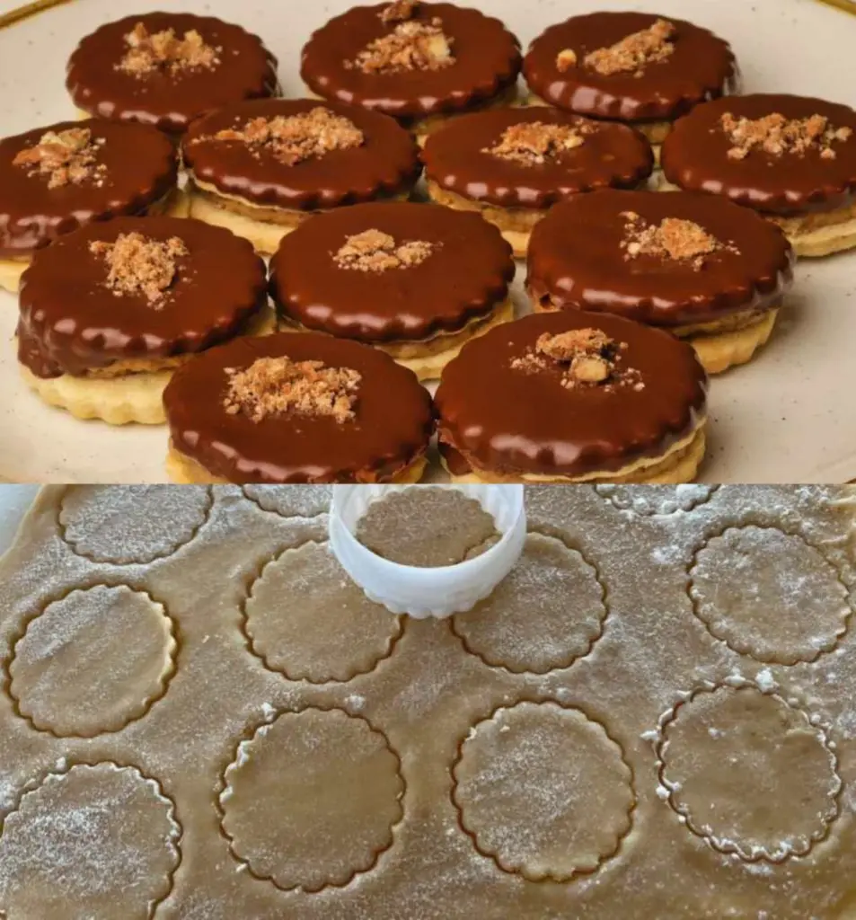 • Zdobení: Spojené cukroví namočte svrchu do čokoládové polevy a ozdobte jemně nastrouhanou Margotkou. Nechte v chladu ztuhnout.