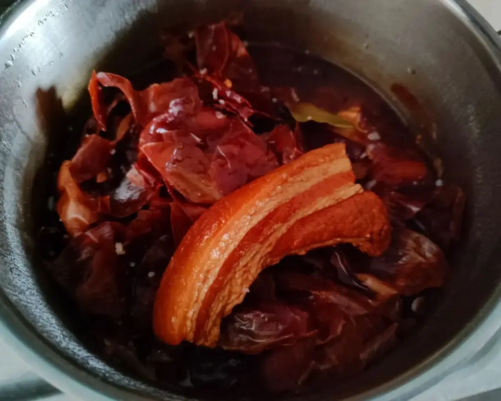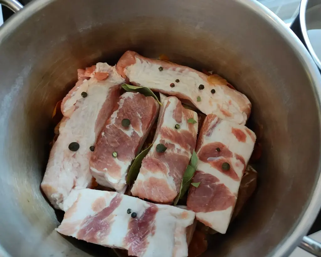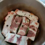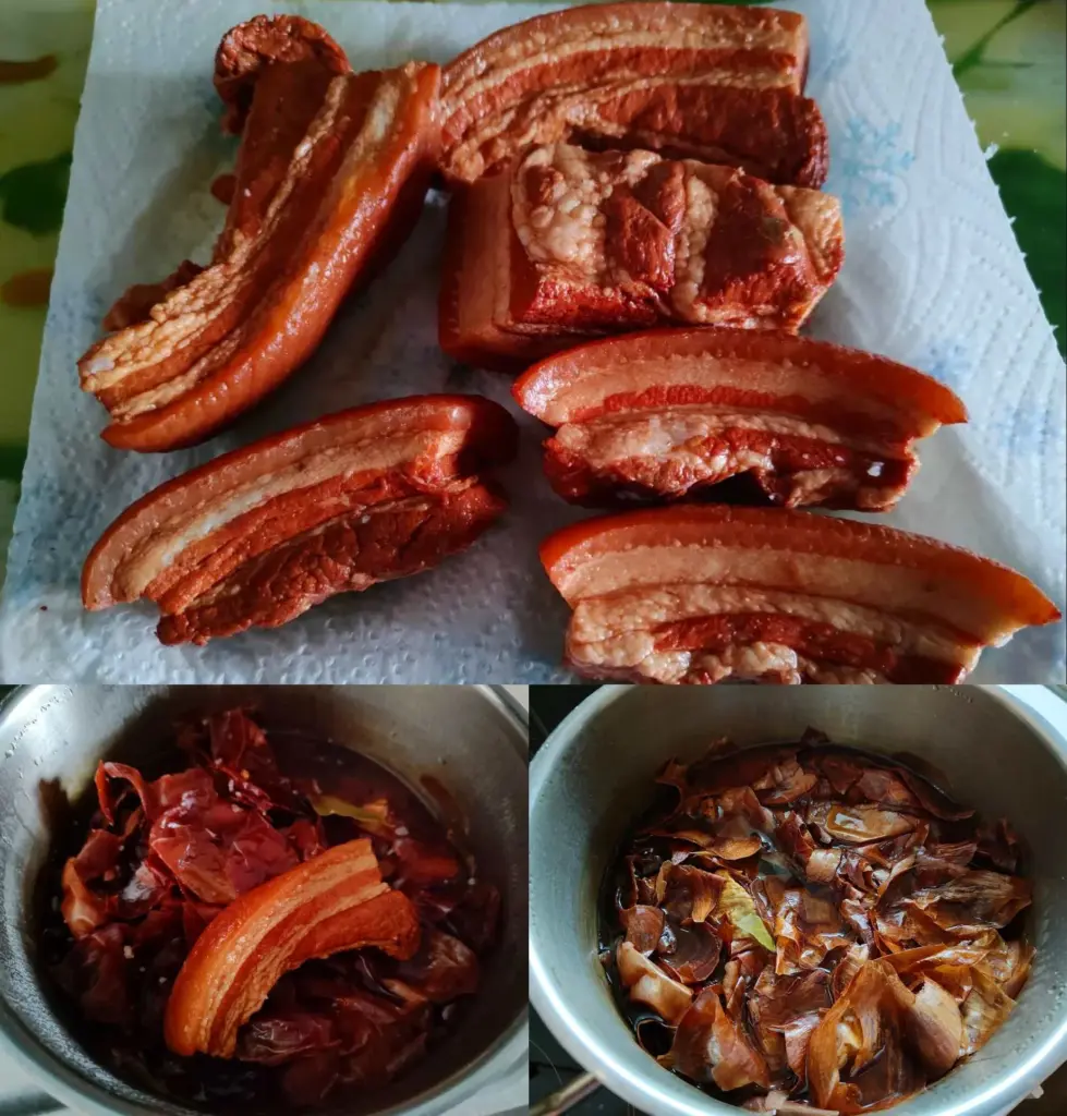 Tento způsob přípravy bůčku zvýrazní jeho chuť naprosto přirozeným způsobem a vytvoří z něj jedinečnou pochoutku. Maso je šťavnaté, měkké, lehce pikantní a díky cibulovým slupkám má krásně zlatavou barvu. Podávejte na tenké plátky s chlebem, domácí nakládanou zeleninou nebo připravte jako součást slavnostního talíře. Takto připravený bůček je ideální domácí delikatesou, která zazáří na každé rodinné oslavě i běžném stole.