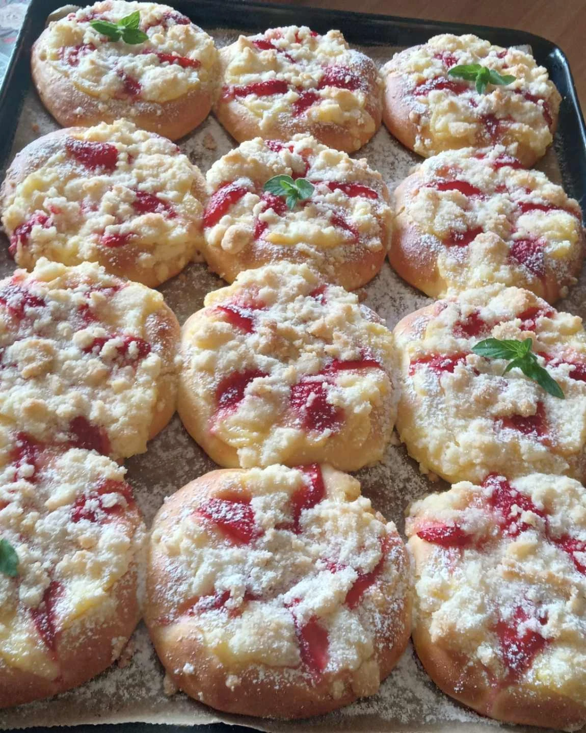 Tyto domácí koláčky s pudinkem, jahodami a drobenkou jsou kombinací vláčného těsta, jemného krému a šťavnatého ovoce. Jsou ideální ke kávě, na slavnostní stůl nebo jen tak, když dostanete chuť na poctivý moučník. Vyniknou čerstvé, ale chutnají skvěle i druhý den. Pokud máte rádi tradiční domácí pečení s moderním nádechem, tento recept rozhodně stojí za vyzkoušení.