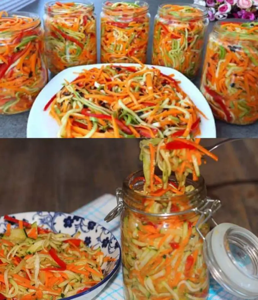 Cuketovo-mrkvový salát do sklenic je skvělá volba, jak zpracovat úrodu a mít po ruce barevnou, křupavou přílohu po celý rok. Vynikne k pečenému masu, rybám i do baget a burgerů. Připravte si pár sklenic do zásoby – na zimu budete mít hotovou přílohu během pár vteřin.