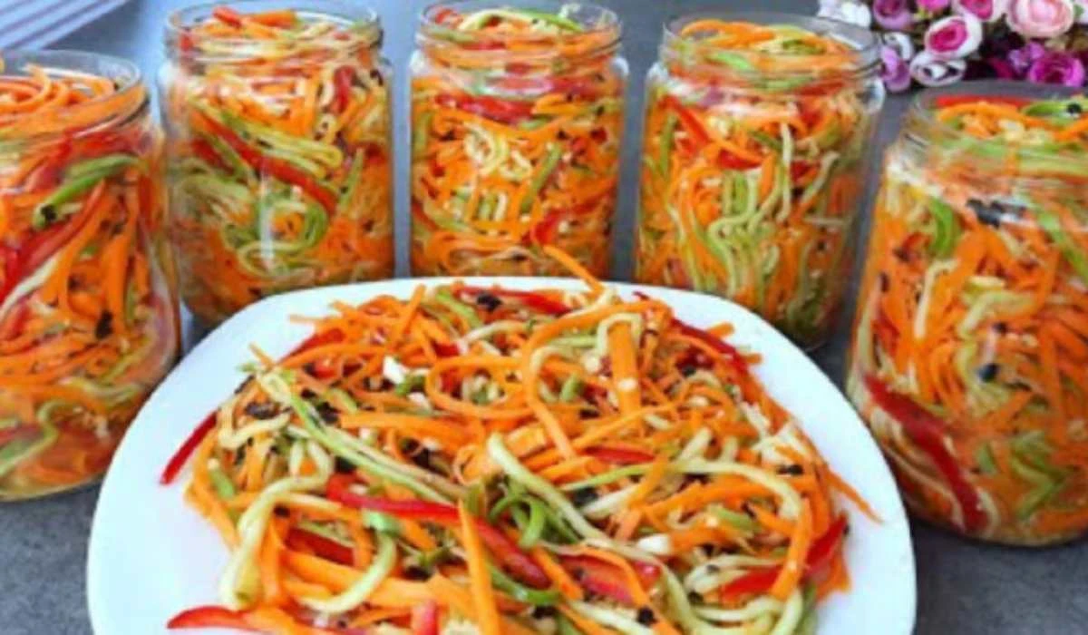 Cuketovo-mrkvový salát do sklenic je skvělá volba, jak zpracovat úrodu a mít po ruce barevnou, křupavou přílohu po celý rok. Vynikne k pečenému masu, rybám i do baget a burgerů. Připravte si pár sklenic do zásoby – na zimu budete mít hotovou přílohu během pár vteřin.