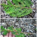 Vyberte správný strom: Zvolte velký a zdravý strom túje. Zaměřte se na silnou větev v horní části stromu, kterou budete odlamovat. Je důležité, aby větev pocházela z horní části, protože řízky z bočních větví mohou mít horší tvar a proporce.