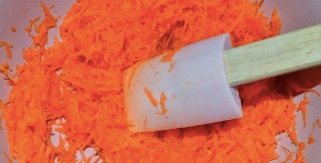 - Očistěte a najemno nastrouhejte čerstvou mrkev.